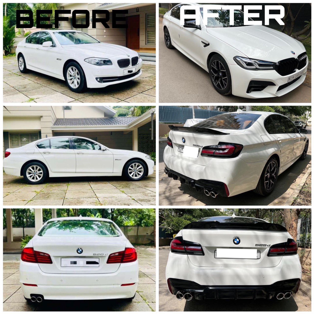 Included Components- Front and Rear Bumpers: Aerodynamically sculpted for enhanced looks and potential performance gains, the bumpers are manufactured from high-quality, impact-resistant ABS plastic or fiberglass.- Bonnet/Hood: Features precise OEM-style fitment, made from lightweight composite materials to reduce front-end weight and improve vehicle dynamics.- Front Grille Assemblies: Includes signature dual kidney grilles that align perfectly with BMW’s aesthetic, manufactured for strength and a bold visual statement.- Headlights and Taillights:The kit includes both projector-style headlights and modern LED taillights, engineered for direct plug-and-play compatibility and improved visibility- Side Skirts and Fender Liners: Side skirts for improved aerodynamics, with widened fender liners for enhanced stance and support of larger wheels.- Complete Set of Mounting Brackets, Ducts, and Fitment Accessories: All necessary hardware and brackets ensure a seamless installation, without extra modifications.- Exhaust Tips and Rear Diffuser: Sporty rear diffusers and stylized exhaust tips are included, giving the rear profile a performance-enhanced appearance.-Air Intakes, Splitters, and Spoilers: Additional aerodynamic elements like air intake ducts, bumper splitters, and subtle trunk-lid spoilers can be found in the comprehensive package, optimizing airflow and adding visual flair.